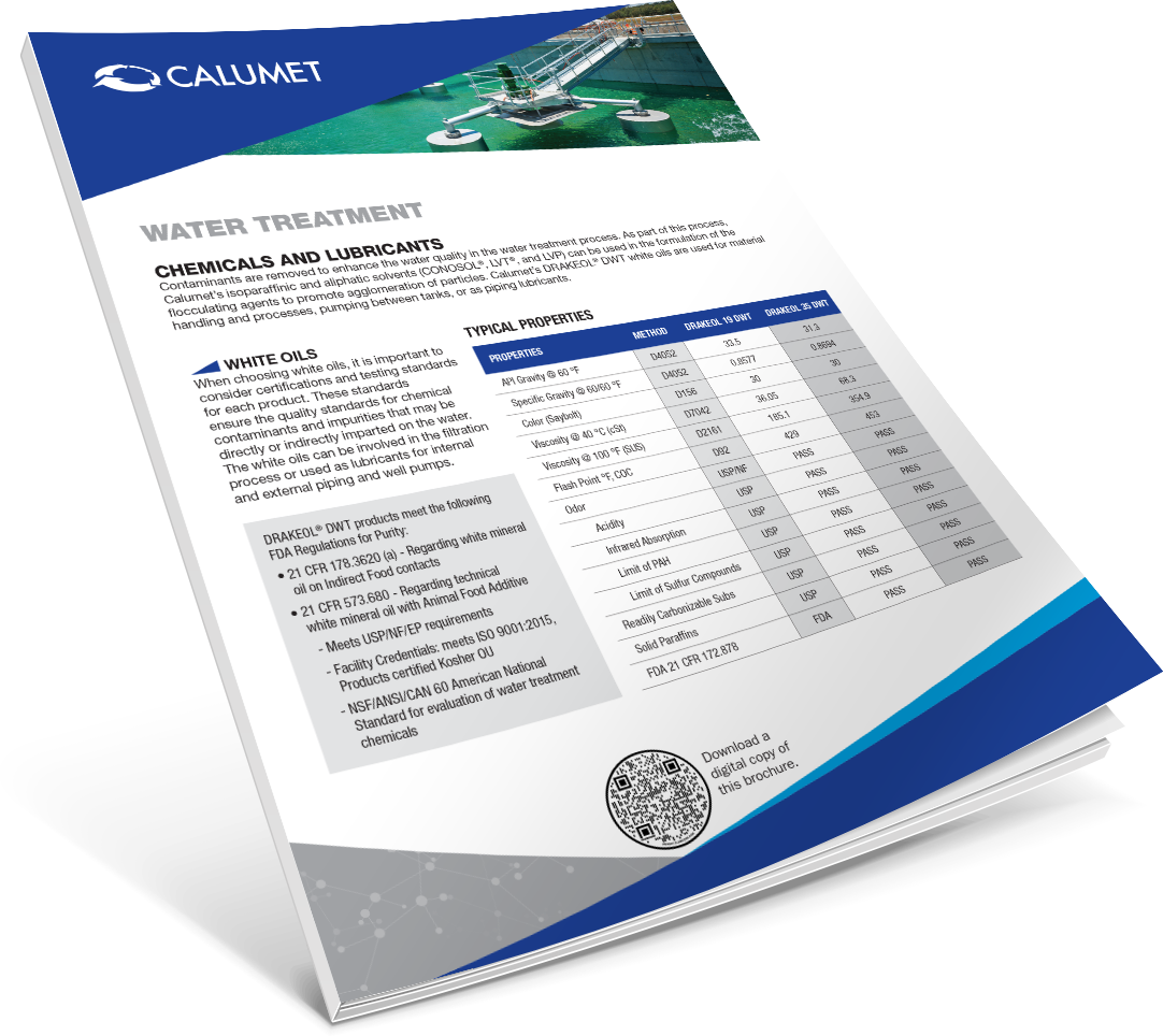 As part of the process to enhance water quality, Calumet offers isoparaffinic and aliphatic solvents that can be used to formulate flocculating agents. In addition, we have white oils that can be used for material handling and processing, pumping between tanks, or as piping lubricants.